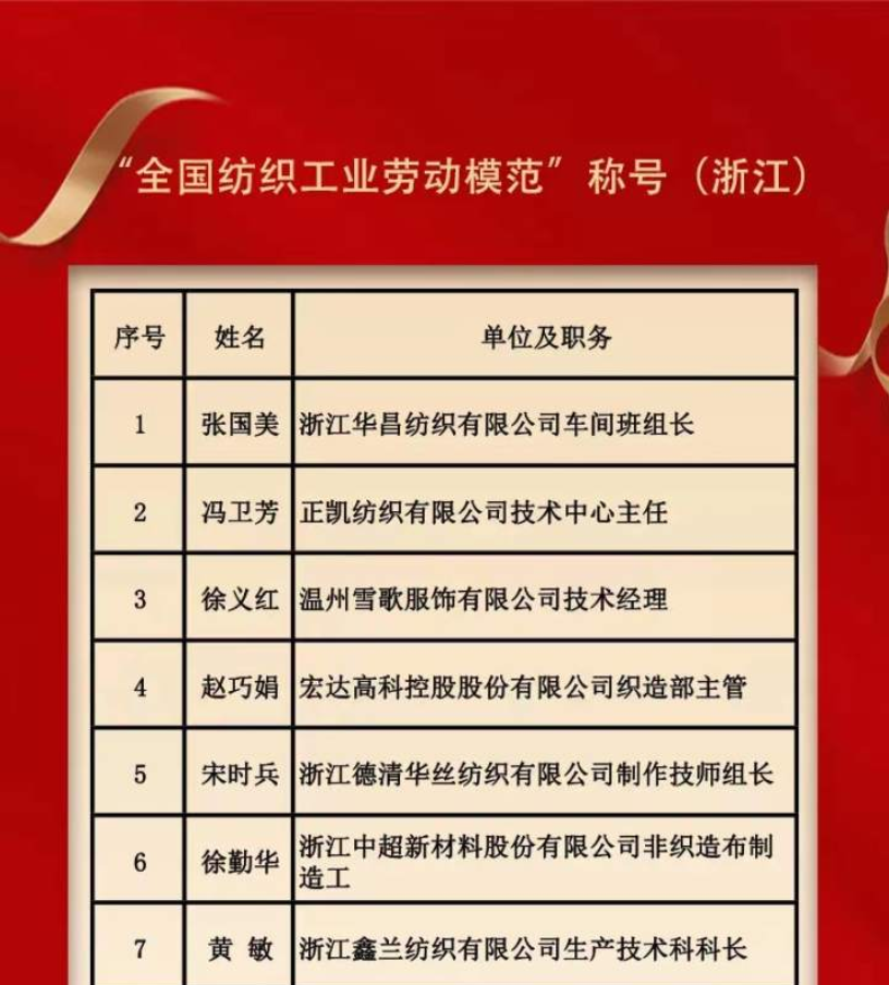 校友、18届纺织工程专业研究生黄敏荣获“全国纺织工业劳动模范”称号。